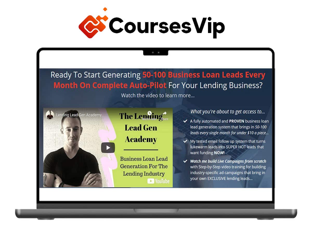 The Lending Lead Gen Academy Download course provides a proven, step-by-step system to generate 50-100 high-quality business loan leads every month—on complete autopilot. Whether you’re a loan officer, financial advisor, or entrepreneur, this course will teach you how to run high-converting Facebook ads, build pre-qualification funnels, and automate follow-ups to increase conversions and scale your business effortlessly.